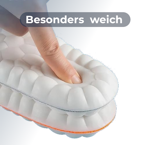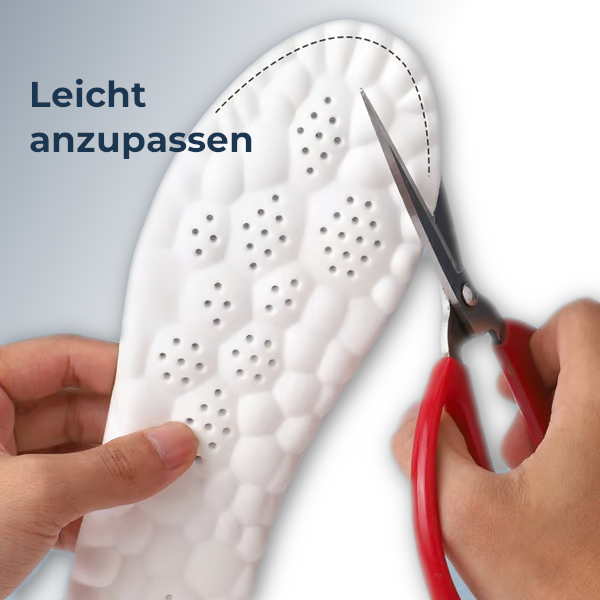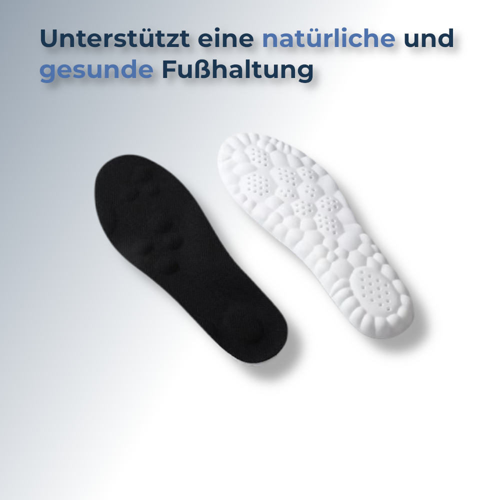 Unsere Einlegesohlen bestehen aus atmungsaktiven Materialien und nutzen die innovative 4D-Belüftungstechnologie. Dadurch wird Feuchtigkeit effektiv abgeleitet und Schweiß reguliert, was die Entstehung von Bakterien hemmt und unangenehme Gerüche reduziert.