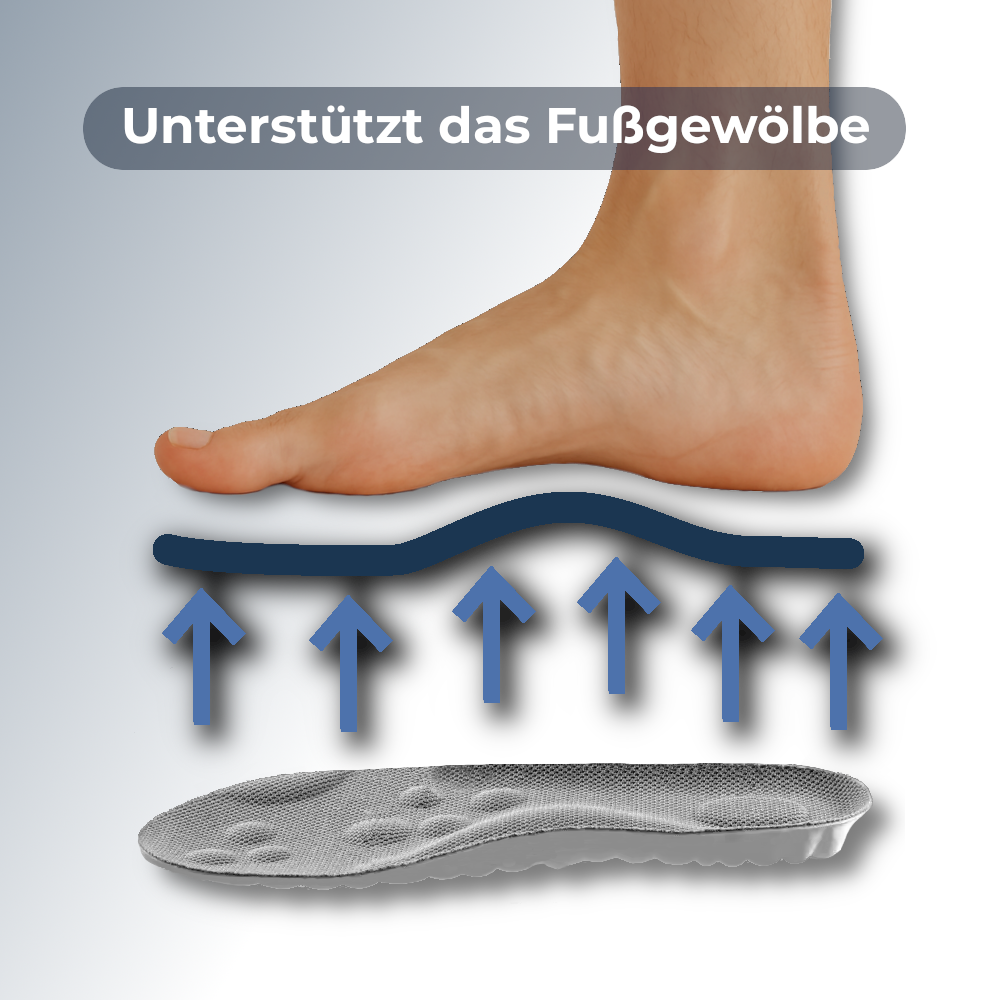 Ja, unsere Einlegesohlen sind speziell mit einer Fußgewölbestütze ausgestattet, die den Druck gleichmäßig verteilt. Dadurch bieten sie optimalen Komfort und zusätzliche Unterstützung für Menschen mit flachen Füßen oder anderen Fußbeschwerden.